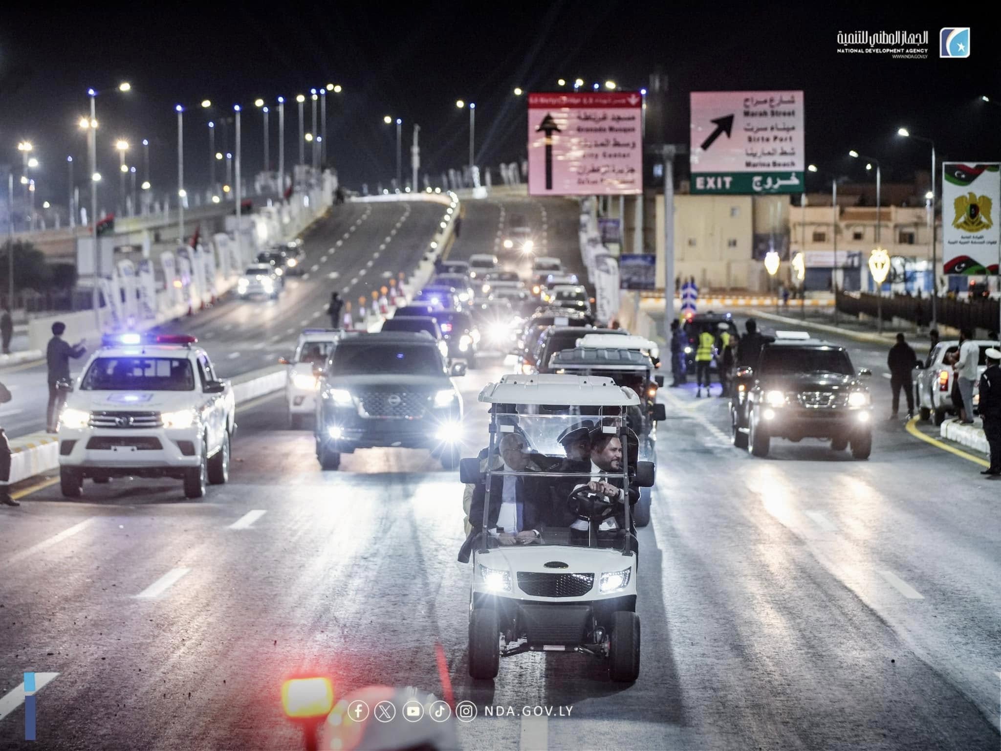 جانب من احتفاء أهالي مدينة سرت وضيوفها وممثلي إدارتها المحلية .. بافتتاح جسر شهداء 6/6 كأول جسر يُشيّد في تاريخ مدينة سرت بتنفيذ شركة THE ARK ذى آرك المصرية .. بمتابعة وإشراف الجهاز الوطني للتنمية .