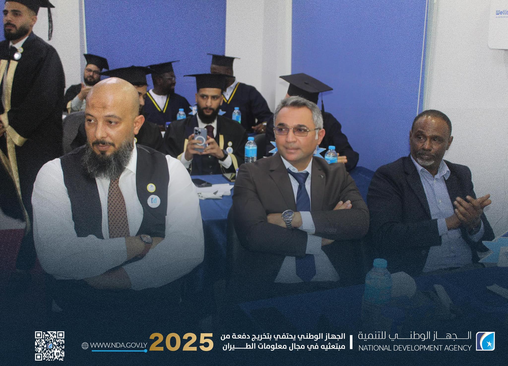 حضر حفل التخرج، الذي أُقيم في مقر الأكاديمية بالقاهرة يوم الخميس 1 مايو 2025، وفد رسمي من الجهاز الوطني للتنمية ضم المستشار القانوني للجهاز والمشرف العام على التدريب، إلى جانب مدير عام مطار خليج سرت وممثل الطيران المدني، إدارة بنغازي.