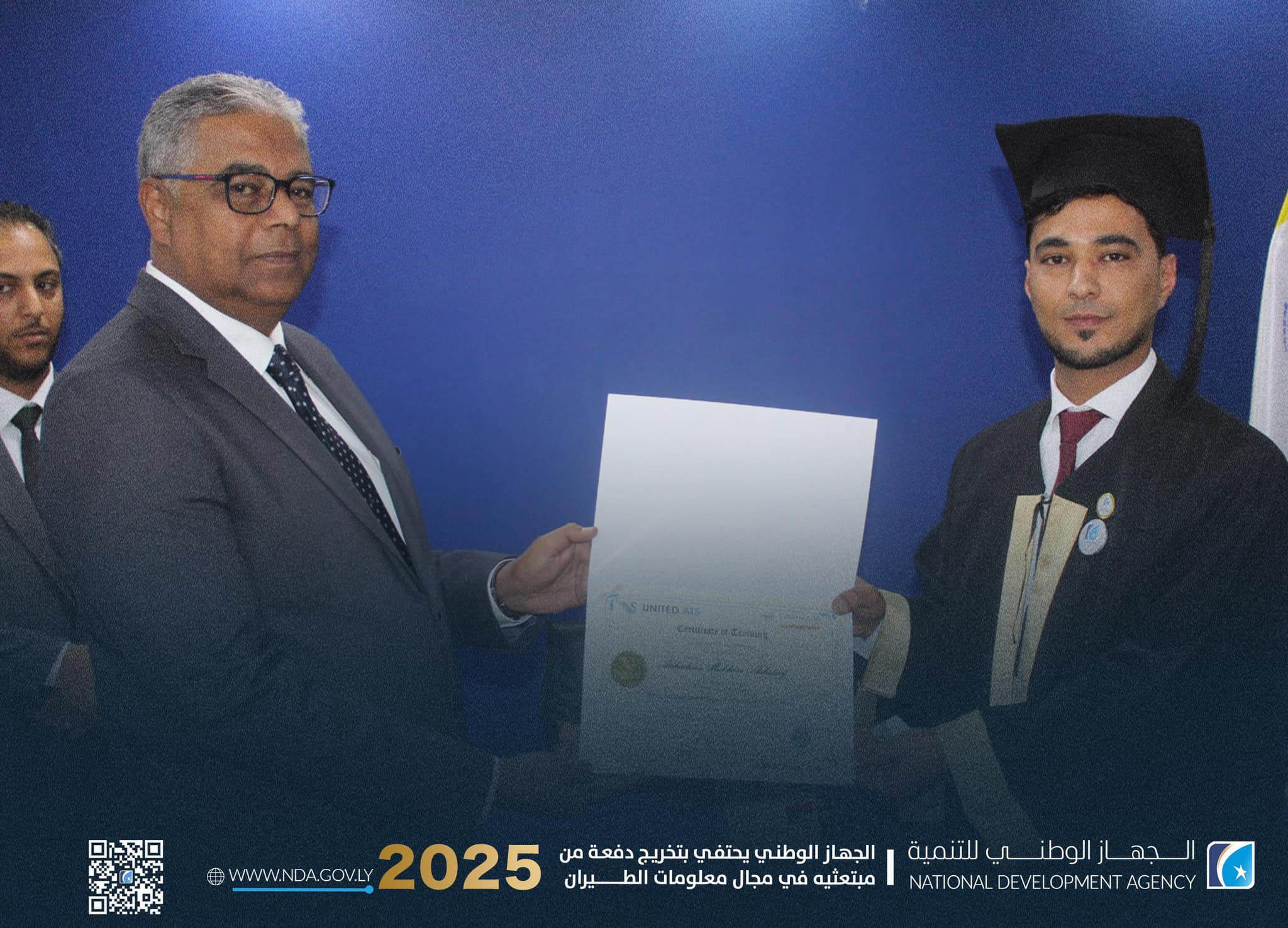تنفيذا لتوجيهات القيادة العامة، وفي إطار جهوده المتواصلة لتنفيذ برامج الإيفاد والتأهيل المتخصص، احتفى الجهاز الوطني للتنمية بتخريج دفعة جديدة من الطلبة الليبيين المبتعثين إلى أكاديمية UNITED ATS بجمهورية مصر العربية، ضمن برنامج تدريبي في مجال معلومات الطيران (AIS) لصالح مطار خليج سرت الدولي.