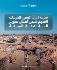 في إطار أعمال تنمية وتطوير البنية التحتية في مدينة سرت، أنهت الشركة المنفذة أعمال إزالة كوبري الغربيات القديم، في خطوة تأتي ضمن الجهود الرامية إلى تنظيم المدينة وتحسين مظهرها العام بما يتماشى مع متطلبات التطور العمراني الحديث.