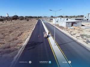 استكملت فرق العمل طلاء مسارات الطرق ضمن مشروع رصف طريق موسى بن نصير المزدوج الممتد حتى طريق مصنع الأعلاف بطول 4.8 كيلومتر، وذلك ضمن خطة تطوير شبكات الطرق في مدينة سرت.